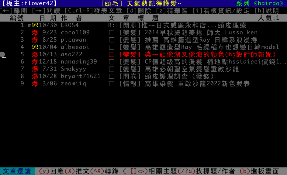 遠古時代PTT美髮板爆文寫手2015至今該板共6篇熱門文章